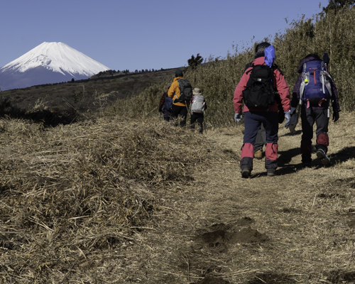 ④外輪山と県境の稜線を富士山を見ながら歩く