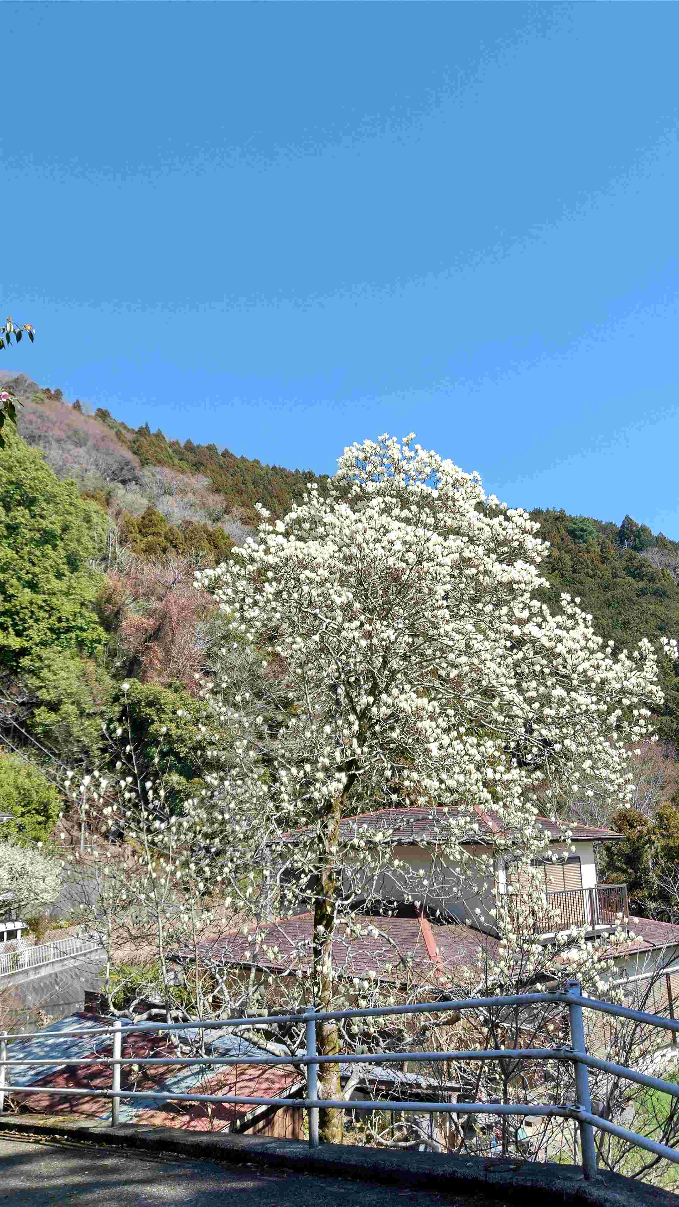 1.スタート里山の風景 白木蓮が輝くように咲いていた