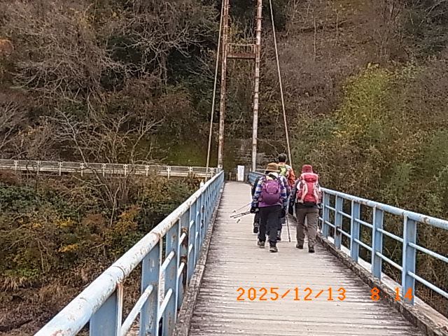 丹沢湖から流れる定員10名以下の吊橋からスタート